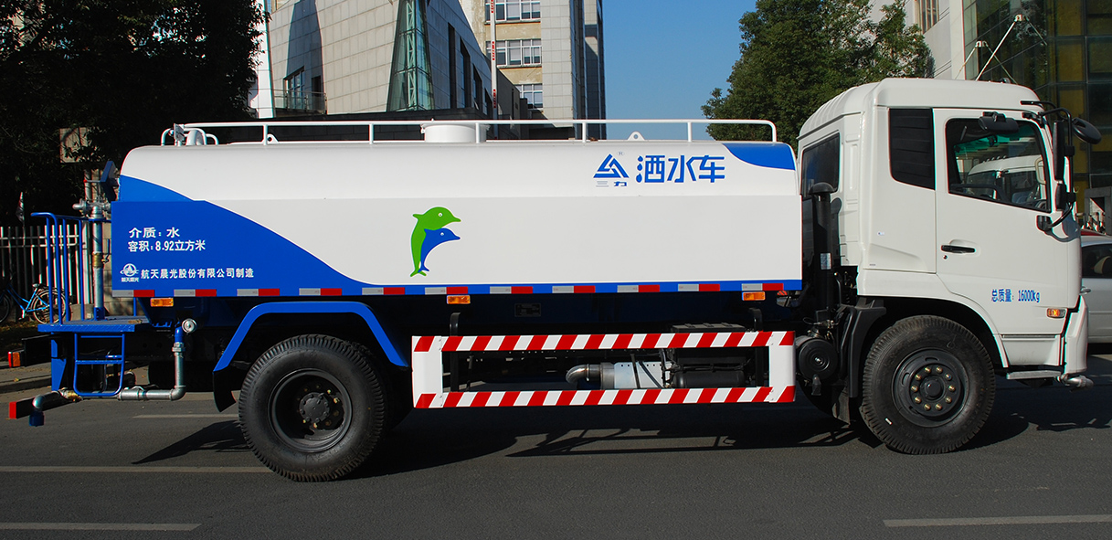 CGJ5160GSS02型灑水車具有五大功能:a. 對路面進行沖洗、灑水;b.運輸功能;c. 應(yīng)急消防;d. 對樹木園林進行噴洗、澆灌養(yǎng)護;e. 作移動泵站。是專門用于城鎮(zhèn)道路、公路、橋梁、工程、工地等路面沖洗、灑水、降塵以及園林綠化噴洗和澆灌的專用車輛。